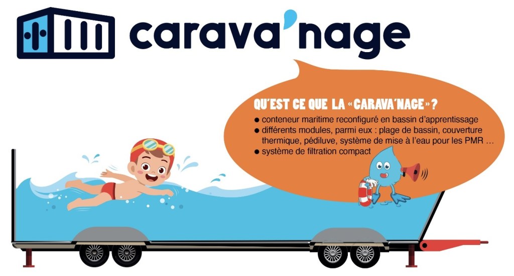 Conçu pour les enfants de 4 à 6 ans, Carava’nage est un bassin mobile de petite taille qui sillonne les quartiers de l’Eurométropole. Ce dispositif ludique permet aux enfants de se familiariser avec l’eau en toute sécurité, de développer leur confiance en eux et d’acquérir les bases de la natation.