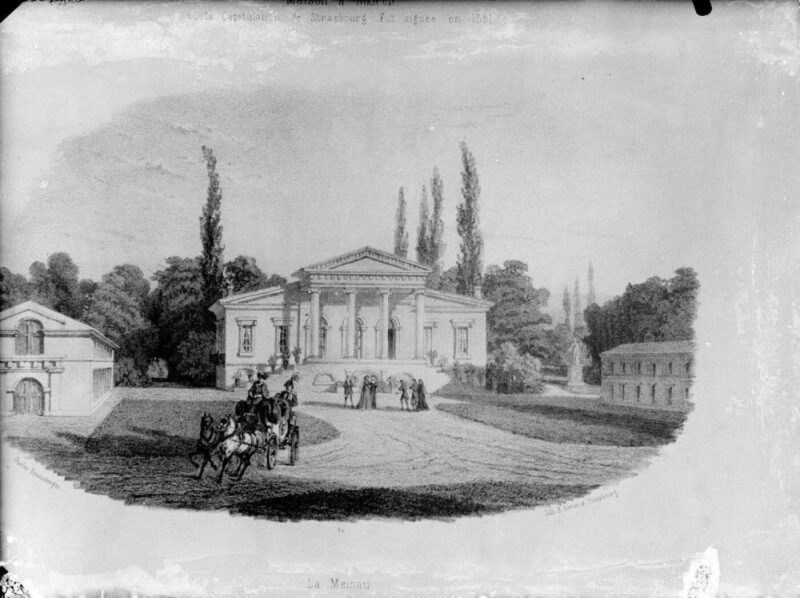 Après la chute de Napoléon, Schulmeister revient à Strasbourg et acquiert un vaste domaine au sud de la ville. C’est lui-même qui aurait choisi de le nommer « Meine Aue « , qui signifie » Mes prairies » en alsacien, en référence aux vastes étendues herbeuses qui caractérisaient le quartier à l’époque. Il y construit un château luxueux où il organise de somptueuses réceptions.