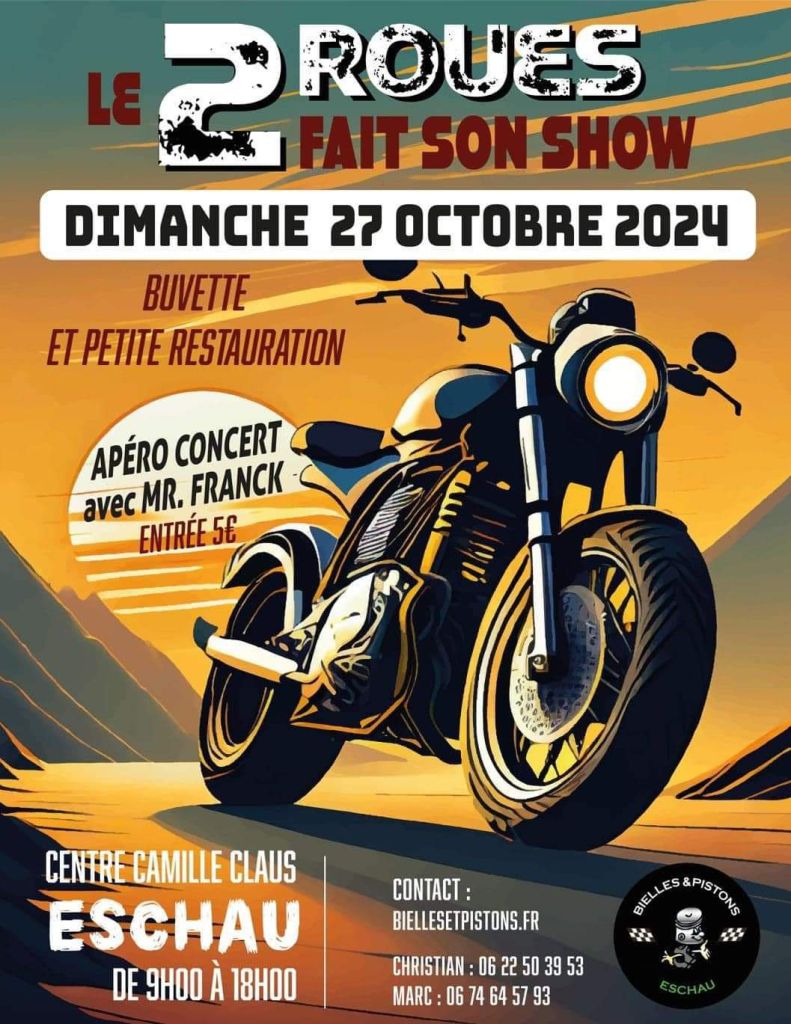 Avis aux passionnés de moto ! Ce dimanche 27 octobre 2024, Eschau accueille une journée dédiée aux deux-roues, pour le plus grand plaisir des motards, collectionneurs et curieux. 🏍️