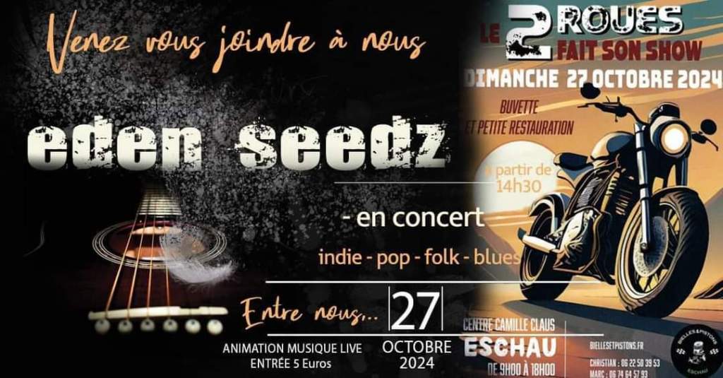 Musique et ambiance festive 🎶 : À partir de 14h, un apéro musical avec Mr. Franck précédera un concert du groupe Eden Seedz. Parfait pour se détendre et se retrouver entre passionnés.
