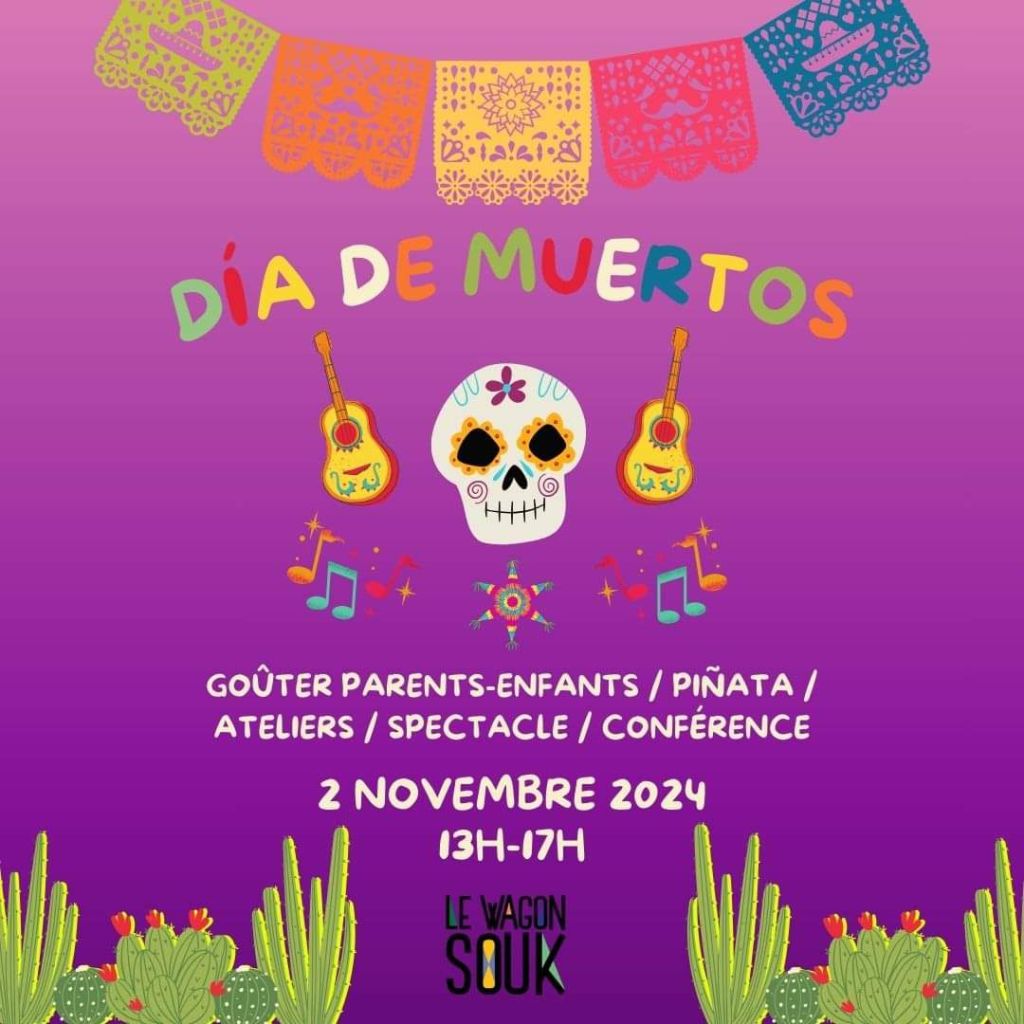 Ambiance festive et couleurs vives au Wagon Souk ce samedi ! Pour célébrer la Fête des Morts, le lieu s’inspire des traditions mexicaines avec un programme varié : création d’un autel des morts, atelier de confection d’alfeñiques (figurines en pâte de sucre), conférence sur le Día de Muertos et spectacle de danse traditionnelle. Une piñata viendra clôturer la journée, tandis que des stands de maquillage et d’artisanat mexicain raviront petits et grands.