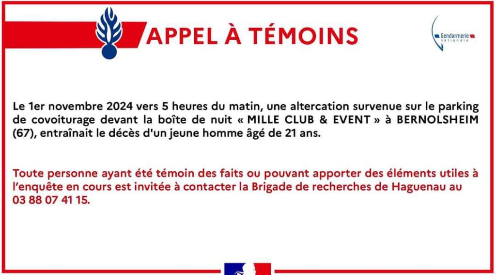 À Bernolsheim, le décès tragique d’un homme de 21 ans dans la nuit du 31 octobre sur le parking de la discothèque Mille Club a marqué les esprits. Ce dernier a succombé à ses blessures après une altercation survenue lors d’une soirée à thème, en dépit de l’intervention rapide des secours. Une enquête pour meurtre a été ouverte par le parquet de Strasbourg.