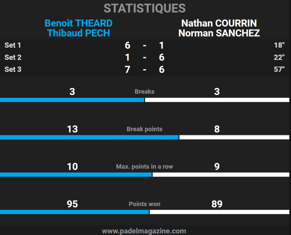 Classés 14e au départ, Théard et Pech ont surmonté des adversaires redoutables tout au long du tournoi. Leur chemin vers le sommet les a vus battre plusieurs paires mieux classées, témoignant d’une grande résilience et d’un niveau de jeu en constante progression. Le point culminant fut leur victoire en finale, une bataille où ils ont défendu avec acharnement chaque point pour finalement triompher face à leurs rivaux. Cette performance souligne non seulement leur talent, mais aussi leur capacité à gérer la pression dans les moments critiques.