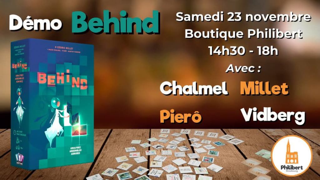 Les passionnés de jeux de société auront rendez-vous à la boutique Philibert ce samedi 23 novembre, de 14h à 18h, pour découvrir le jeu de réflexion Behind, un jeu hybride mêlant puzzle, narration et création de tableaux. Les auteurs et illustrateurs du jeu, dont Cédric Millet et Maud Chalmel, seront présents pour dédicacer leurs œuvres et échanger avec les participants. L’événement est gratuit et permettra aux curieux de tester le jeu avant sa sortie officielle.