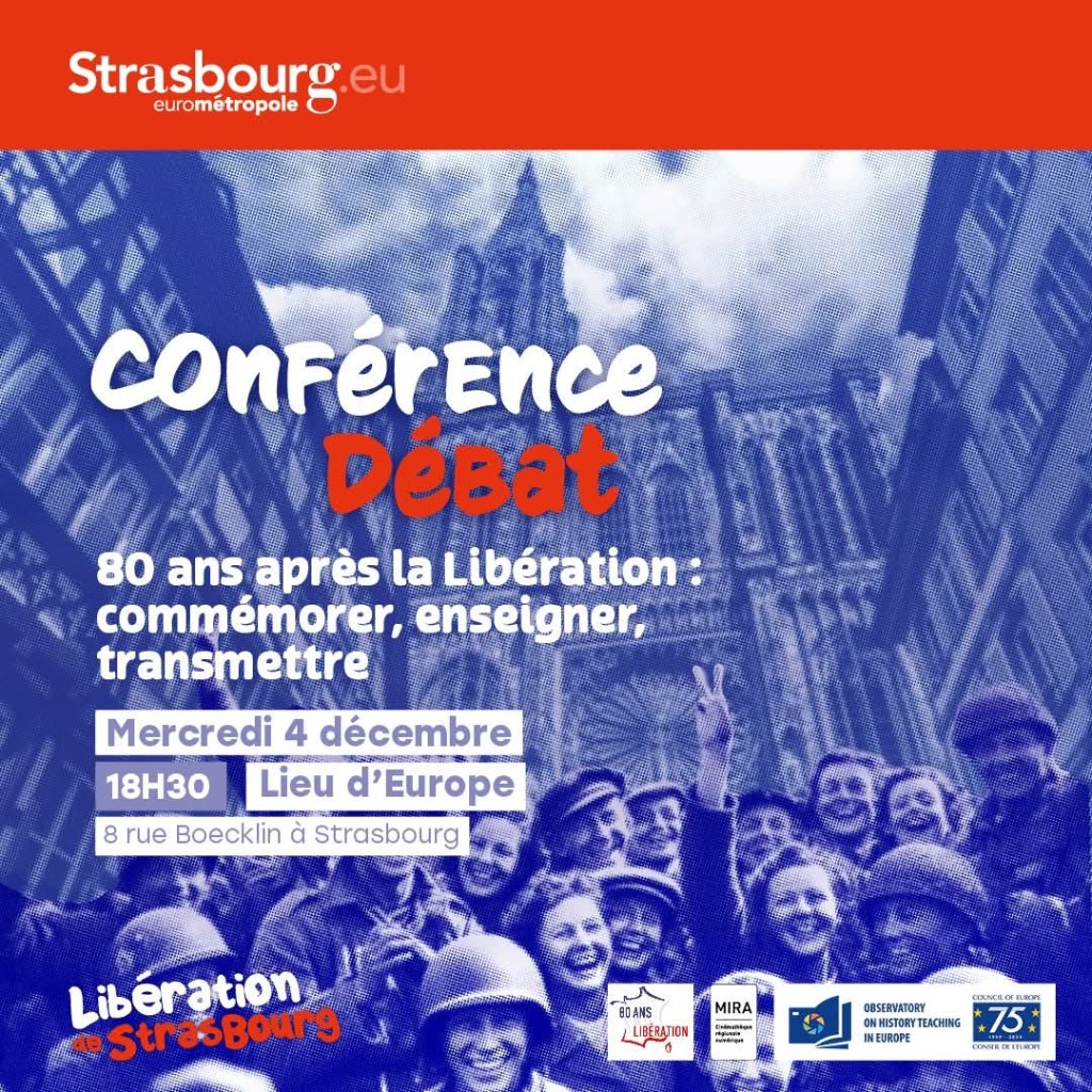 Mercredi 4 décembre à 18h30, le Lieu d’Europe accueille une conférence-débat incontournable : « 80 ans après la Libération : commémorer, enseigner, transmettre ». Organisé par la Ville de Strasbourg en partenariat avec l’Observatoire de l’enseignement de l’histoire en Europe du Conseil de l’Europe et la cinémathèque régionale numérique MIRA, cet événement invite les Strasbourgeois·es à une réflexion sur le poids et l’héritage de cette période historique dans le contexte actuel.
