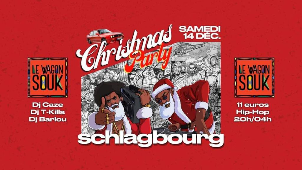 Préparez-vous pour une soirée mémorable au Wagon Souk avec une Christmas Party exceptionnelle ! Une décoration festive, un dancefloor survolté et une ambiance musicale assurée par les talentueux DJs strasbourgeois DJ T-Killa, DJ Caze, et DJ Barlou. Les amateurs de Rap US, Rap FR, Ragga, et Afro Tropical pourront danser jusqu’au bout de la nuit. En début de journée, le Wagon Souk se transformera en Marché de Noël, mettant en avant des créateurs locaux avec des stands variés, dont celui de Schlagbourg, qui dévoilera sa nouvelle bande dessinée ainsi que d’autres créations originales.