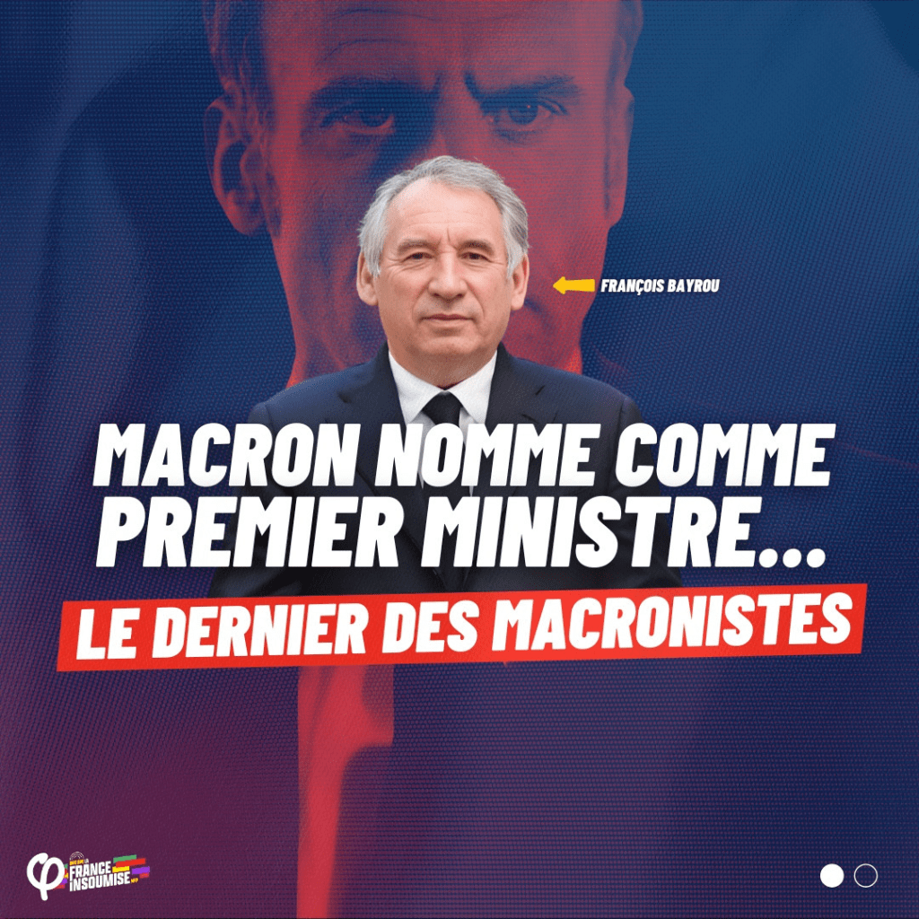Emmanuel Fernandes, également sur Bluesky, a été plus virulent : » François Bayrou, 1er soutien d’Emmanuel Macron, est nommé Premier Ministre, signe de l’atrophie de la macronie, réduite à l’os. On prend les mêmes et on recommence ! Pour le président, le compte-à-rebours s’accélère. Pour nous, un choix clair : la censure, la démocratie !«