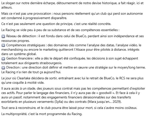 L’avenir du Racing est entre les mains de tous : dirigeants, joueurs, supporters. Il est temps de retrouver l’unité et de bâtir un projet sportif qui permette au club de retrouver sa place au sein du paysage footballistique français.