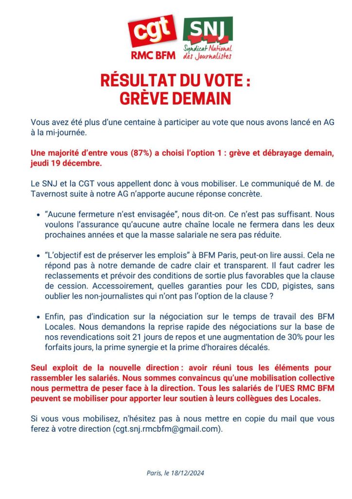 - Un reclassement acceptable pour les salariés de BFM Paris. Si le président Nicolas de Tavernost a assuré que “tous les personnels se verront proposer un reclassement”, les syndicats s’interrogent sur les conditions de ces propositions, notamment pour les CDD et pigistes.