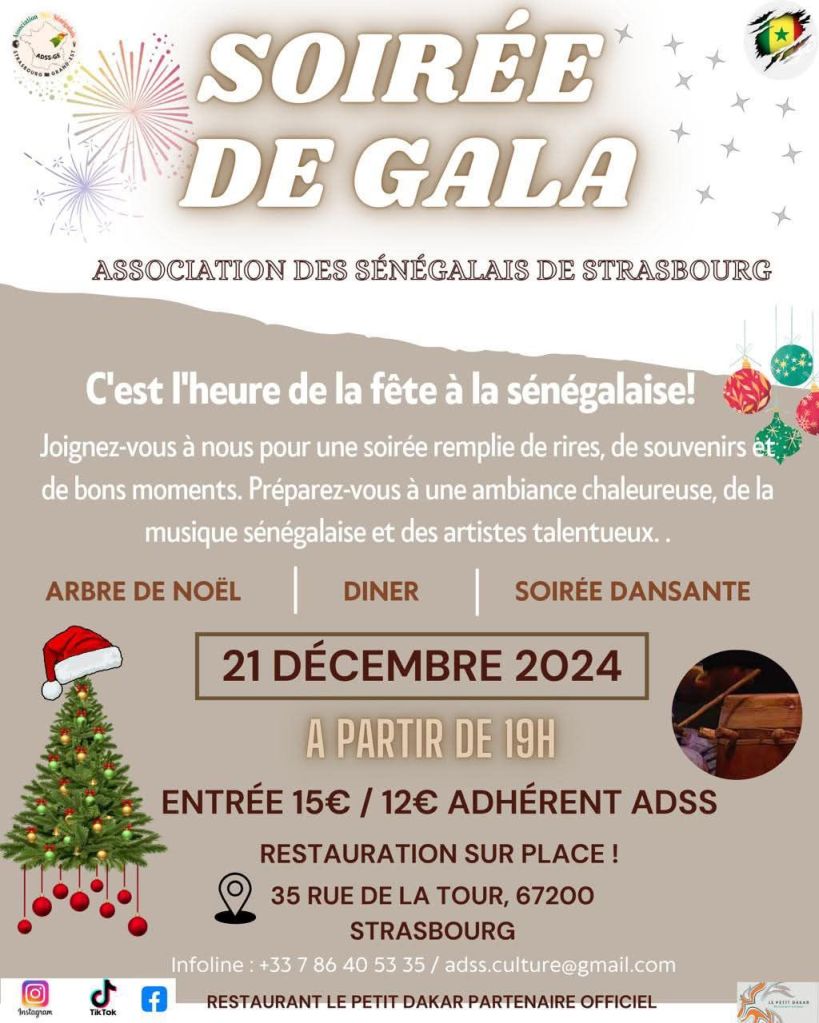 Pour une soirée conviviale et festive, l’Association des Sénégalais de Strasbourg vous invite à célébrer la fin d’année à 35 Rue de la Tour. Au programme :