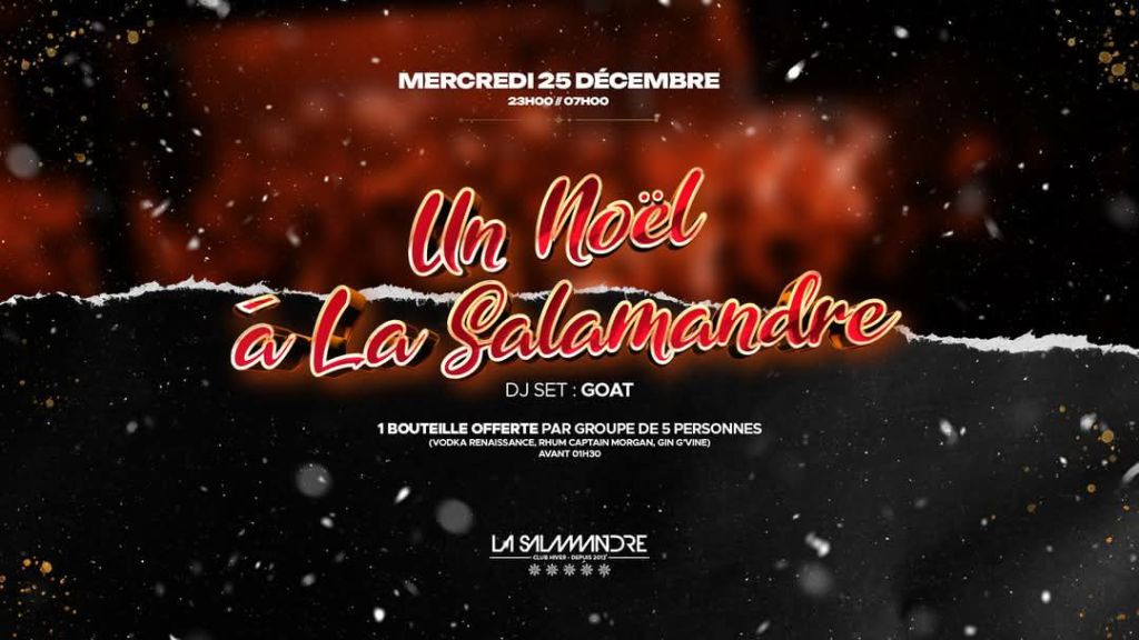 Pour ceux qui recherchent une ambiance plus décontractée et conviviale, La Salamandre propose une soirée festive après le repas de Noël. En guise de cadeau, une bouteille est offerte pour chaque groupe de cinq personnes avant 1h30.