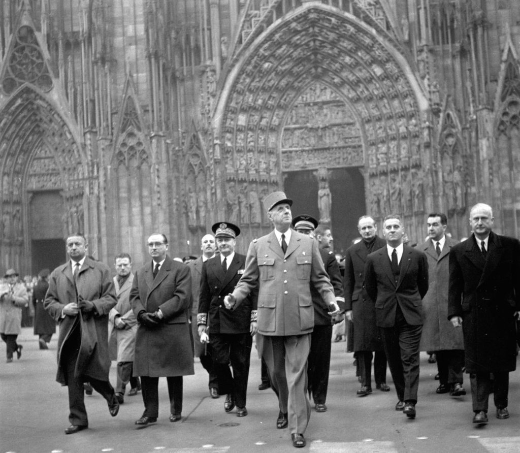Le 23 novembre 1944, la 2ᵉ Division Blindée du général Leclerc entre triomphalement dans Strasbourg, chassant les forces allemandes. Pour les Strasbourgeois, c’est une renaissance. Après des années de domination nazie, la cathédrale arbore de nouveau le drapeau tricolore. Le général Leclerc, fidèle à son serment de Koufra, fait de Strasbourg un symbole du retour de l’Alsace à la mère patrie.