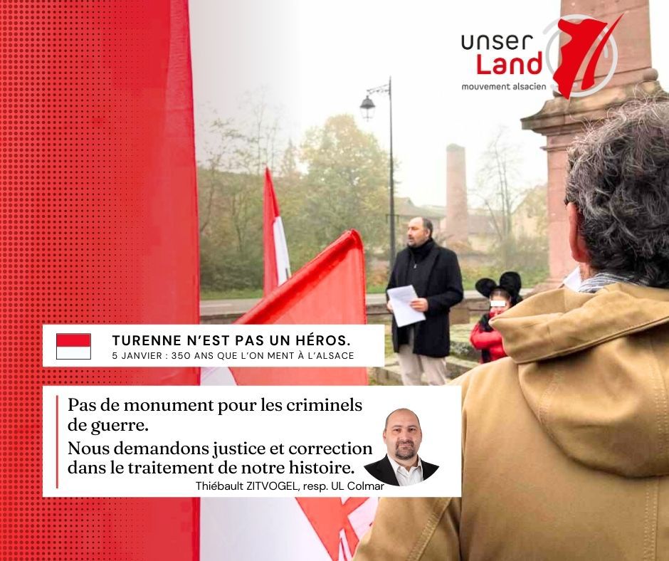 Le post d’Unser Land, un mouvement régionaliste alsacien, exprime une position très ferme contre ce monument. Selon ce mouvement, il ne s’agit pas simplement d’un hommage à une figure militaire, mais d’une glorification d’un acte brutal qui a causé des souffrances à la population alsacienne. Pour eux, Turenne n’est pas un héros, mais un symbole de l’oppression. Leur appel à retirer ce monument s’inscrit dans une volonté de rétablir une mémoire plus juste, en phase avec la réalité historique et les souffrances locales, plutôt que de maintenir une figure qui représente la conquête violente de l’Alsace.