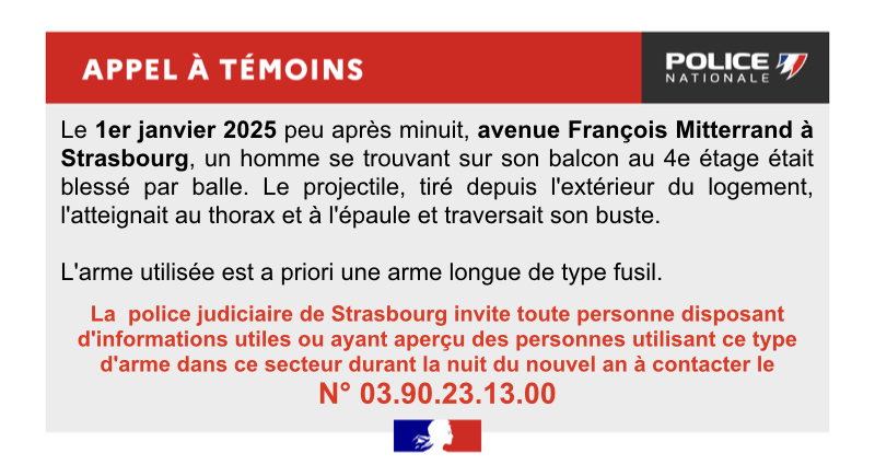 Les Strasbourgeois ayant des éléments susceptibles d’aider à l’enquête peuvent contacter les enquêteurs au 03.90.23.13.00.