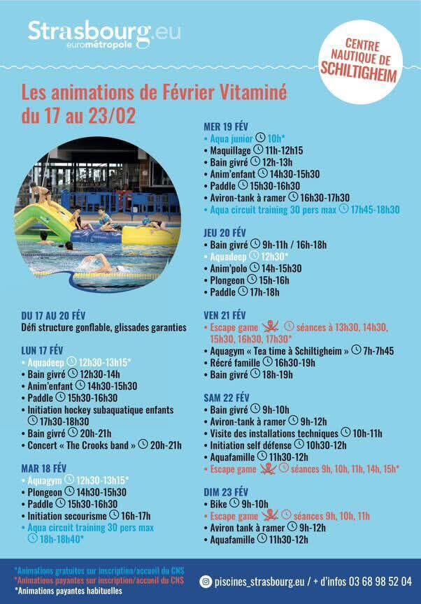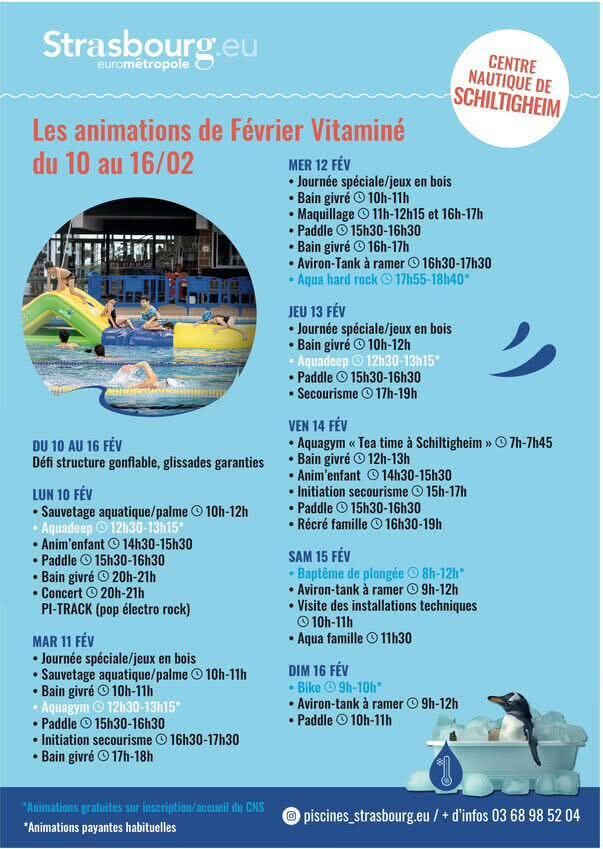 Que vous soyez résident de Schiltigheim ou simplement de passage à Strasbourg, ces animations aquatiques sont l’occasion idéale de profiter de l’hiver autrement. Alors, n’attendez plus pour enfiler votre maillot de bain et plonger dans l’aventure aquatique de Février Vitaminé !