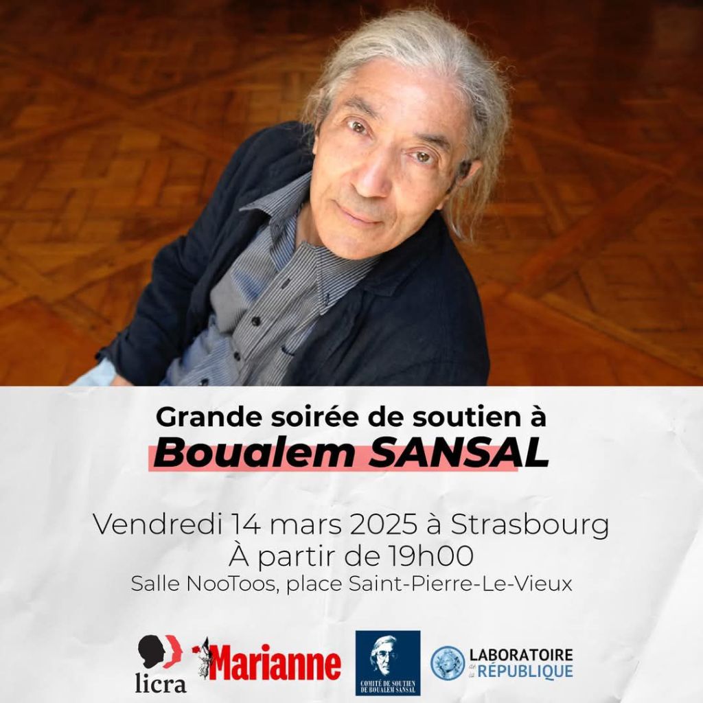Le 14 mars 2025, Strasbourg accueillera une soirée de soutien en faveur de l’écrivain algérien Boualem Sansal, actuellement emprisonné en Algérie. Organisée par la LICRA en partenariat avec le journal Marianne, cette soirée vise à mobiliser l’opinion publique et à rappeler l’importance de la liberté d’expression à l’échelle internationale.