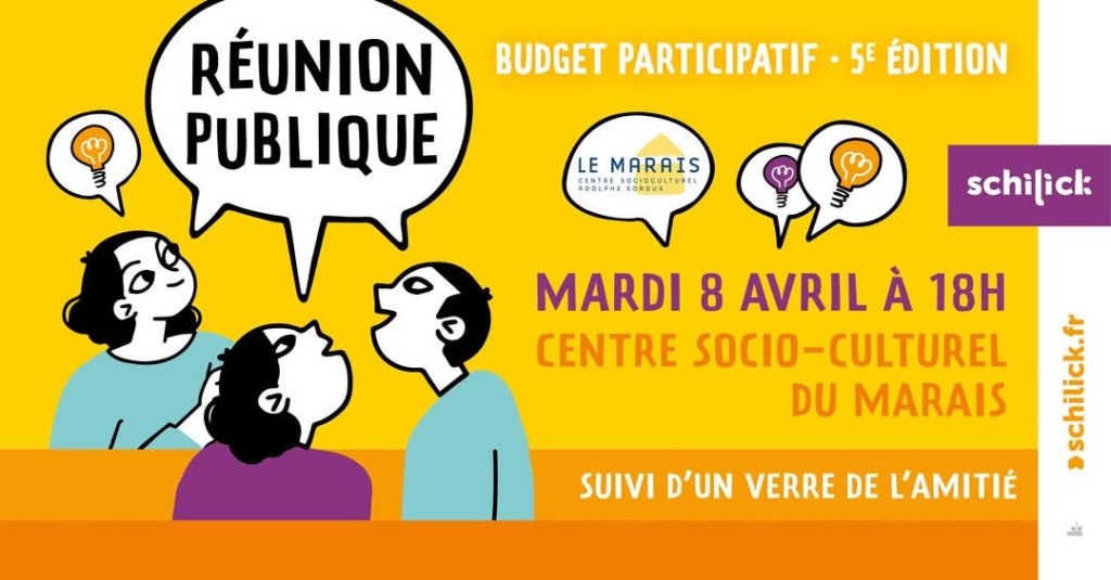 Pour marquer le lancement de cette initiative, la municipalité organise une réunion publique d’information et d’échange le mardi 8 avril 2025 à 18h au Centre socioculturel du Marais (8 rue de Touraine). Cette rencontre sera l’occasion pour les habitants de découvrir le fonctionnement du budget participatif et d’échanger directement avec les services techniques de la Ville sur la faisabilité de leurs idées.