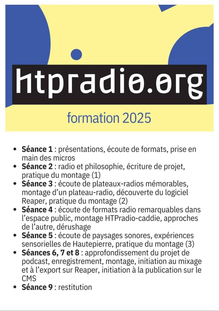 Si vous avez toujours voulu découvrir l’univers fascinant du montage radio et podcast, ne manquez pas l’opportunité de participer aux formations proposées par Horizome et HTP Radio, un programme unique animé par Louis Moreau-Avila. Ancien coordinateur de HTP Radio, Louis vous guidera dans l’apprentissage de l’audio, du montage et de l’enregistrement, tout en explorant des pratiques innovantes et des formats originaux.