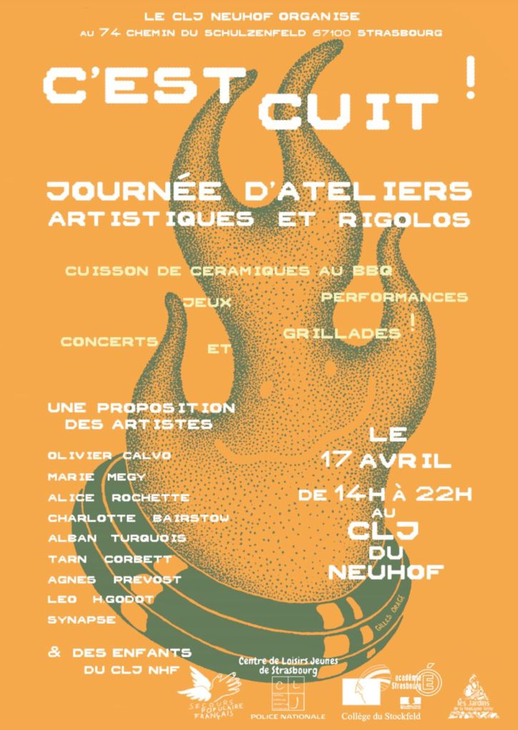 Le Centre de Loisirs Jeunes (CLJ) du Neuhof s’apprête à accueillir une journée festive et créative baptisée « C’EST CUIT ! », ce jeudi 17 avril de 14h à 22h. L’événement, organisé au 74 chemin du Schulzenfeld à Strasbourg, promet une riche programmation mêlant arts, performances et convivialité.