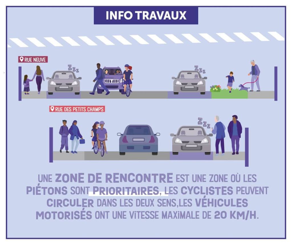 Le projet prévoit de limiter la vitesse à 20 km/h dans ces rues, avec une priorité donnée aux piétons. Les cyclistes pourront circuler dans les deux sens, et le stationnement sera possible uniquement sur des emplacements dédiés.