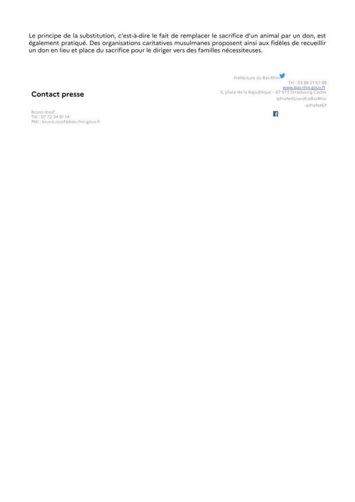 La préfecture rappelle également qu’il est possible de remplacer le sacrifice rituel par un don équivalent à une œuvre caritative. De nombreuses associations musulmanes locales proposent cette alternative afin de soutenir les familles dans le besoin pendant l’Aïd.
