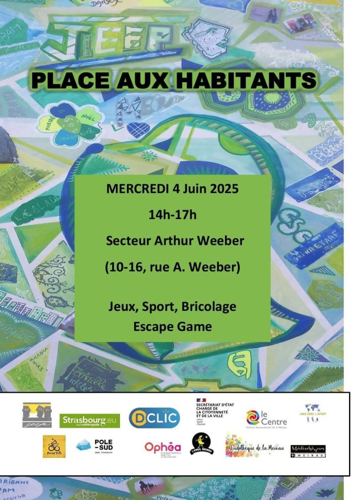 Ce mercredi 4 juin 2025, de 14h à 17h, les habitants de la Meinau sont invités à un après-midi de fête et de rencontres dans le secteur Arthur Weeber (10-16 rue A. Weeber). Baptisé Place aux Habitants, l’événement est porté par l’association JEEP Meinau en partenariat avec de nombreux acteurs du quartier.
