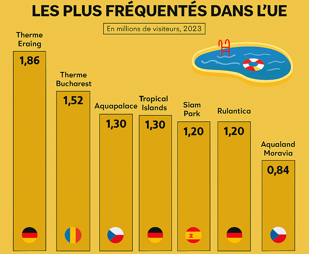 Selon les données 2023 publiées par la Themed Entertainment Association, six parcs aquatiques européens ont franchi le cap du million de visiteurs annuels. En tête :