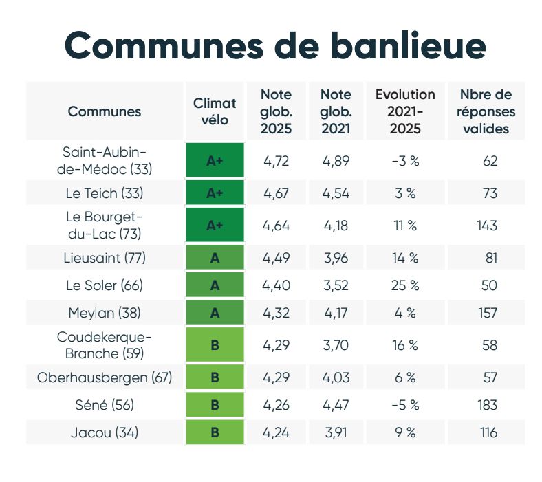 À noter la belle performance d’Oberhausbergen qui décroche la 8ème position dans la catégorie « Ville de banlieue« , confirmant le rayonnement cyclable au-delà du centre-ville strasbourgeois.