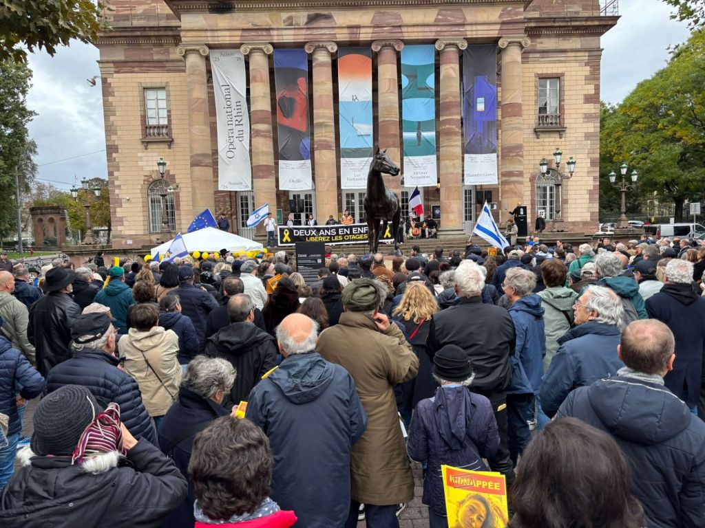 Deux ans après l’attaque perpétrée en Israël, la communauté strasbourgeoise s’est réunie pour ne pas oublier. Organisé par le Conseil représentatif des institutions juives de France (Crif Alsace) et d’autres organisations juives de la région, ce rassemblement a placé au cœur de ses préoccupations les 48 otages encore détenus dans la bande de Gaza.