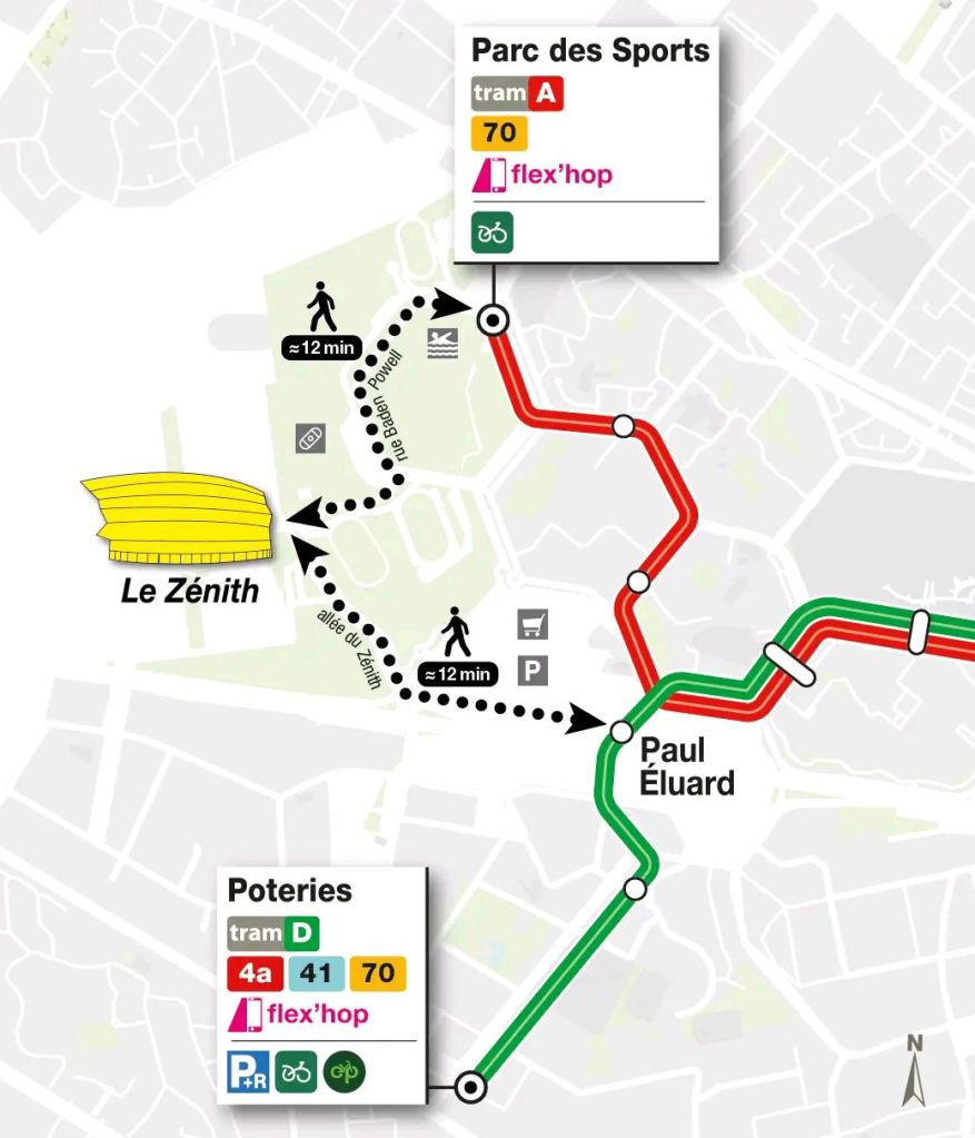 Excellente nouvelle pour les spectateurs : la CTS a prévu des renforts de trams sur les lignes A et D aux alentours de 22h30 pour les deux soirées. Ces navettes supplémentaires faciliteront le retour du public depuis le Zénith Europe après les concerts. À noter qu’une astuce pratique : la station Parc des Sports se situe à seulement 12 minutes à pied du Zénith, offrant une alternative confortable pour rejoindre le centre-ville.