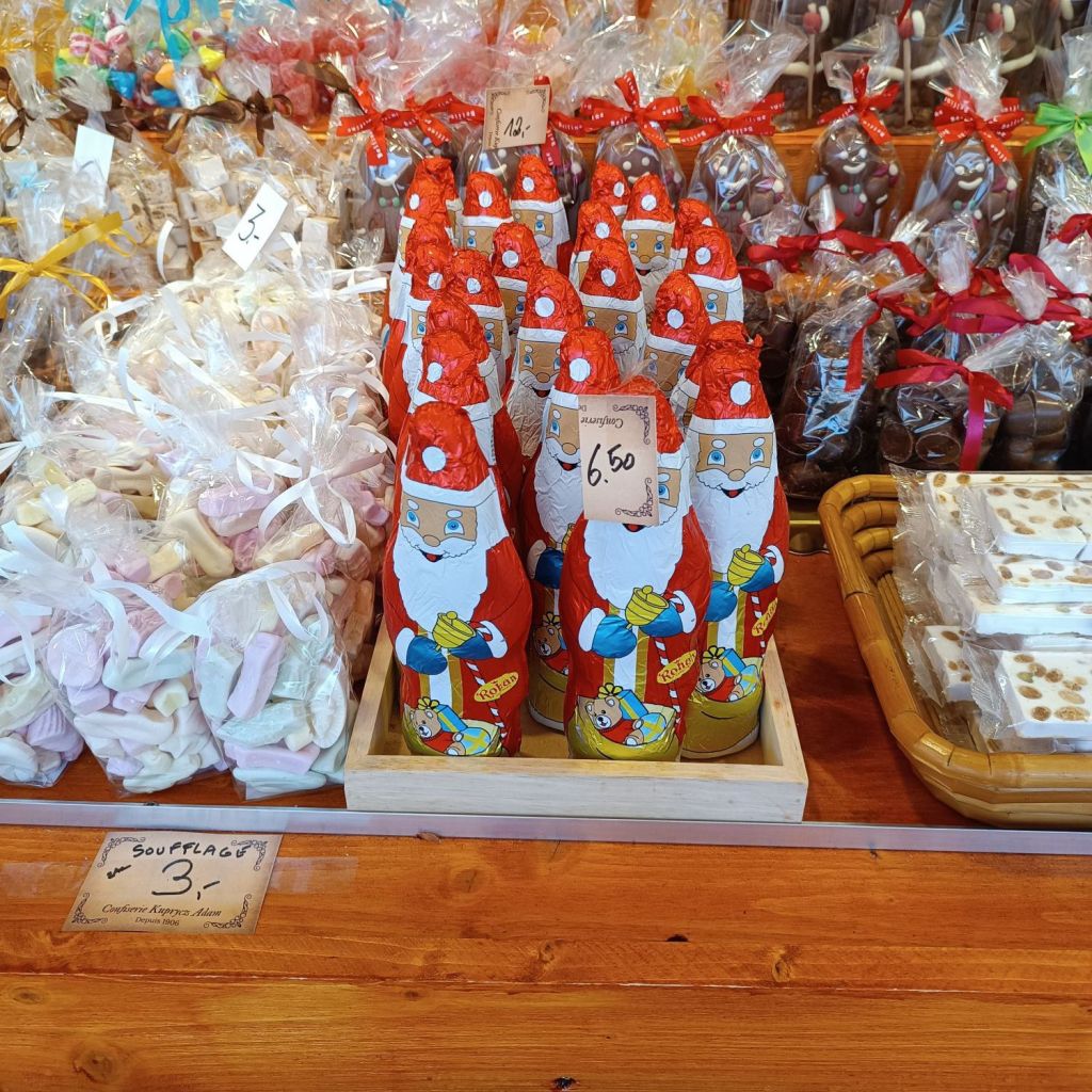 Les stands de douceurs suivent la même logique tarifaire. Les Pères Noël en chocolat s’affichent à 6 euros pièce, tandis que les crêpes sucrées oscillent entre 5 et 7 euros selon les garnitures proposées : M&M’s, Oreo, Kinder… Des marques industrielles qui contrastent avec l’image d’un marché authentique et traditionnel.