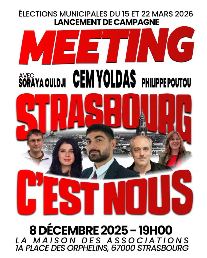 L’événement accueillera Philippe Poutou, conseiller municipal à Bordeaux et figure reconnue de la gauche radicale française. Sa présence témoigne de l’ambition de la liste de s’inscrire dans une dynamique nationale tout en portant des revendications locales. Les Strasbourgeois pourront également entendre Soraya Ouldji, actuellement conseillère municipale à Strasbourg, qui apportera son expérience du terrain et des dossiers locaux.