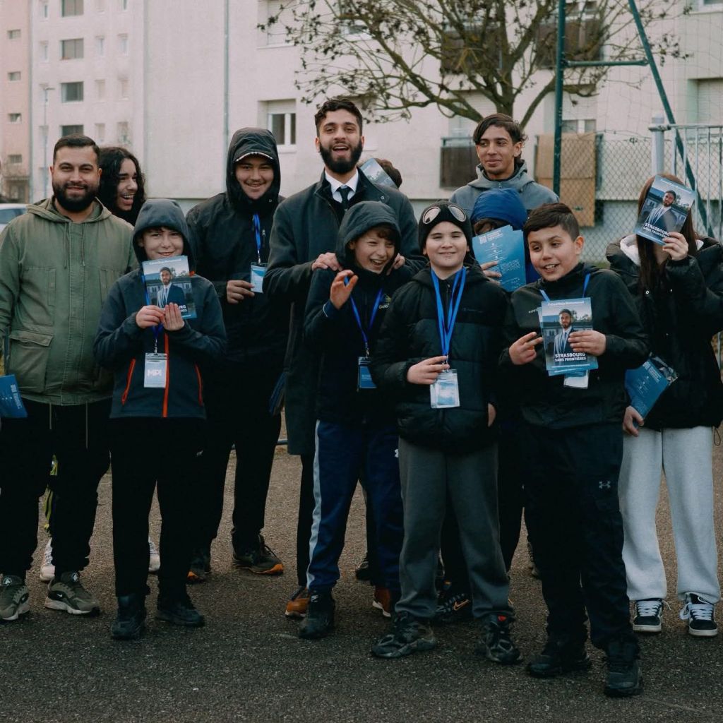 Comme le rappelait notre article d’octobre, le jeune candidat avait choisi de lancer son mouvement dans un quartier populaire plutôt qu’une salle feutrée du centre-ville. Cette approche ancrée dans les réalités sociales se confirme aujourd’hui : son programme découle directement de plusieurs mois d’arpentage des quartiers strasbourgeois et de rencontres dans les Centres Socioculturels de la Neustadt, de Neudorf, de la Meinau ou de Cronenbourg.