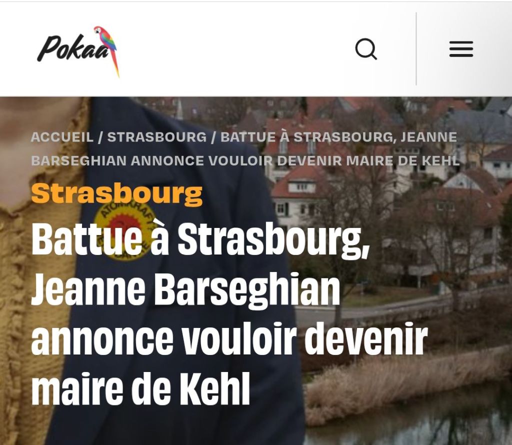 - Jeanne Barseghian candidate à la mairie de Kehl : l’ex-maire écologiste viserait un mandat… en Allemagne.