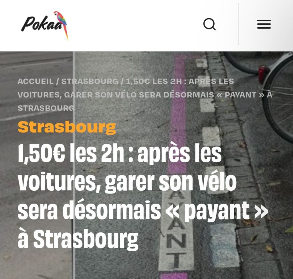- Le stationnement vélo payant à Strasbourg : 1,50 € les deux heures pour garer son vélo en ville.